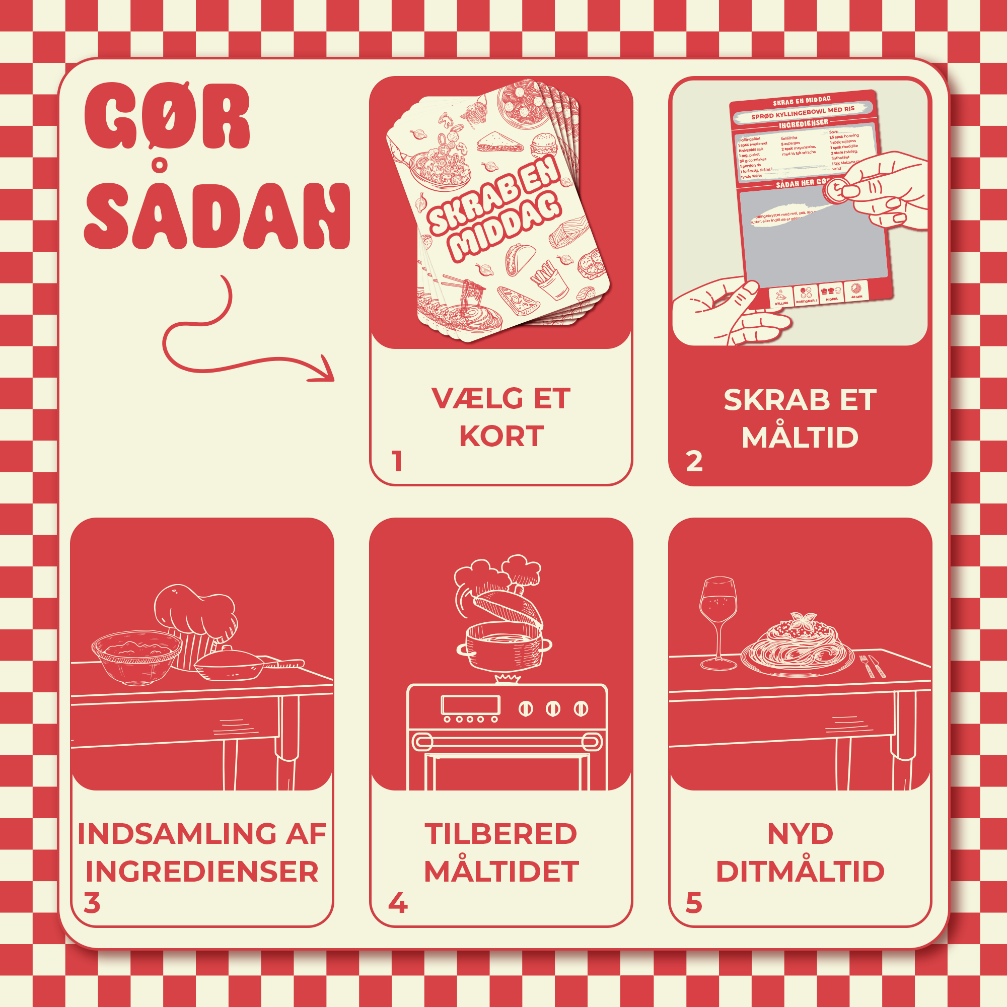 Skrab dig frem til nye, spændende madoplevelser. Hvert kort giver dig muligheden for at prøve noget nyt. Hvorfor vente? Lad mad-eventyret begynde nu, og gør middagen til dagens højdepunkt!